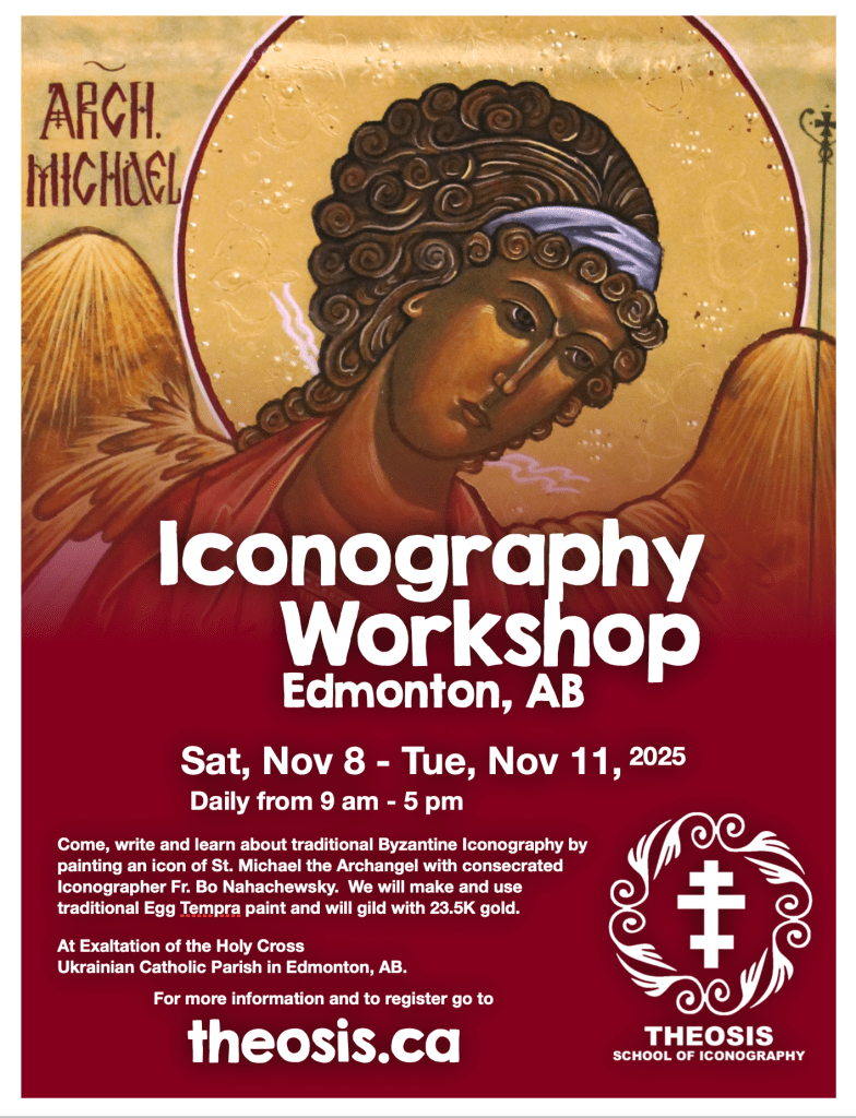 The workshop will take place in the icon studio found within the Exaltation of the Holy Cross Ukrainian Catholic Parish. This is on the north side of Edmonton at the following address: 9003 156 Ave NW, Edmonton, AB.